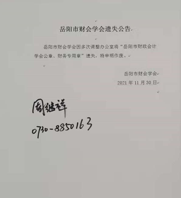 岳阳市财会学会遗失公告
