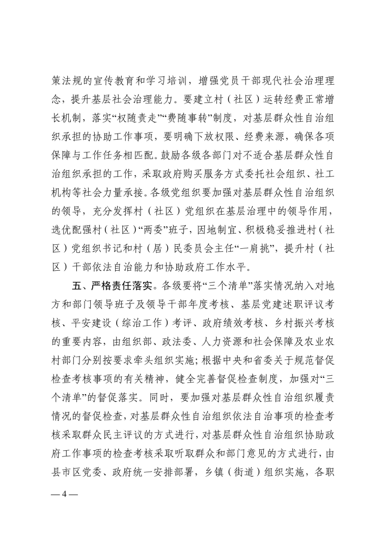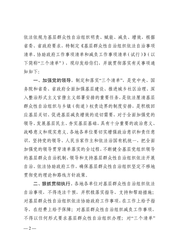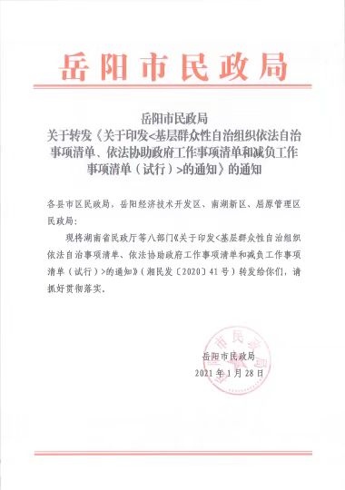 关于转发〈关于印发基层群众性自治组织依法自治事项清单、依法协助政府工作事项清单和威负工作 事项清单(试行)的通知》的通知