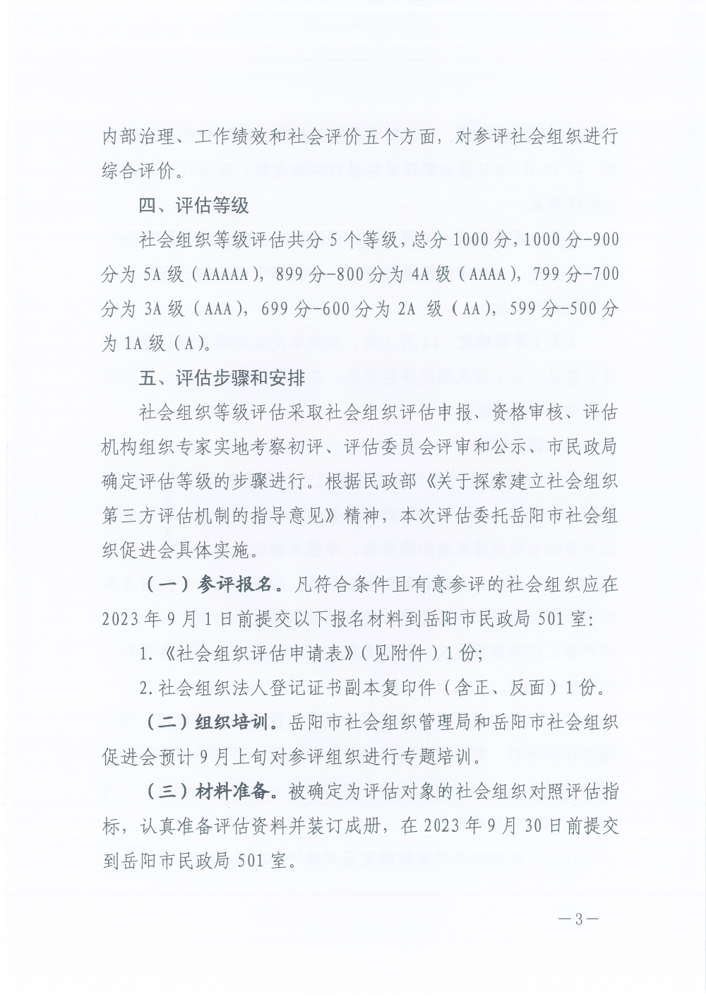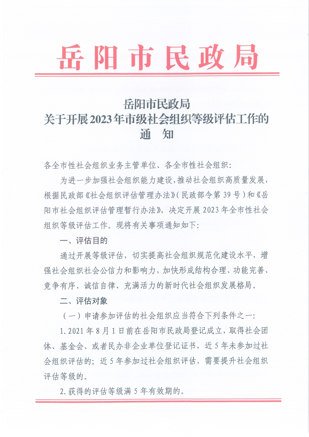 关于开展2023年市级社会组织等级评估工作的通知