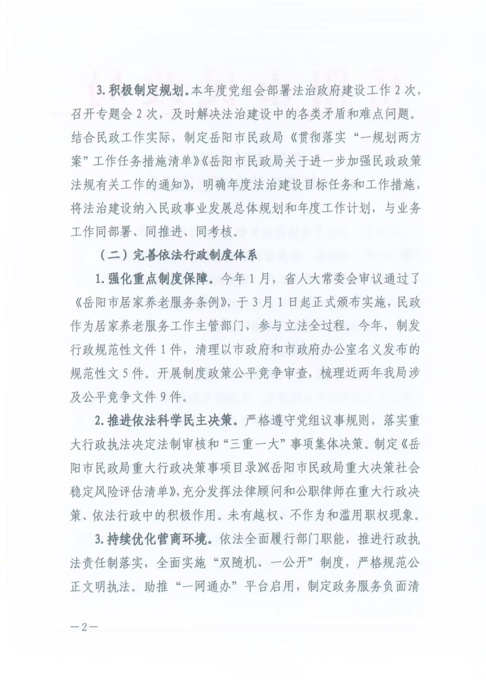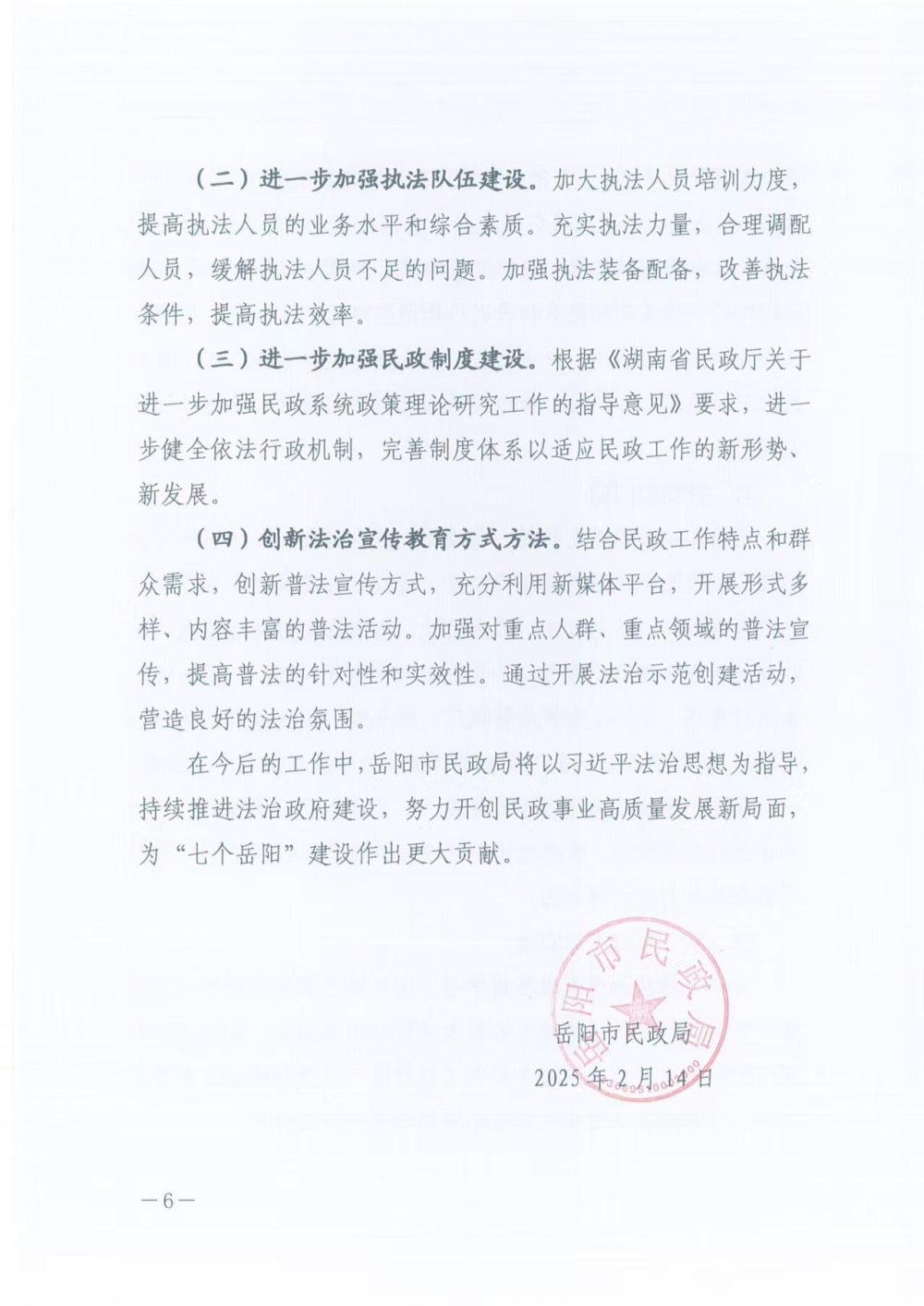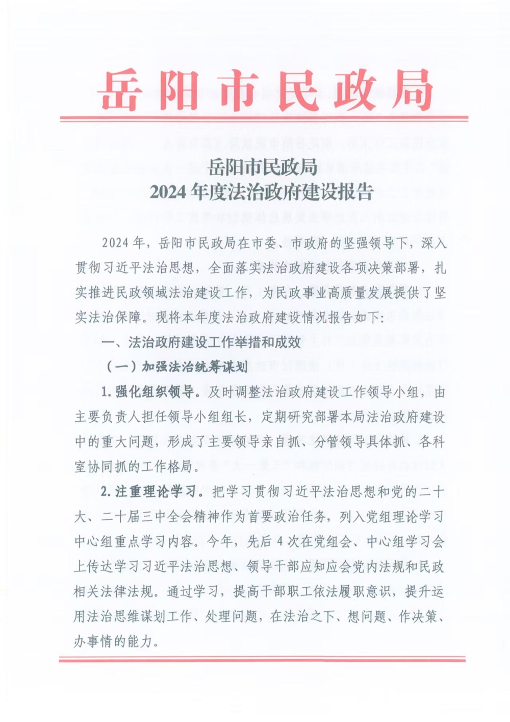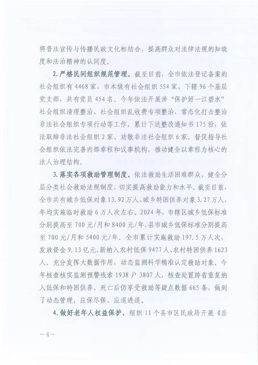岳阳市民政局2024年度法治政府建设报告