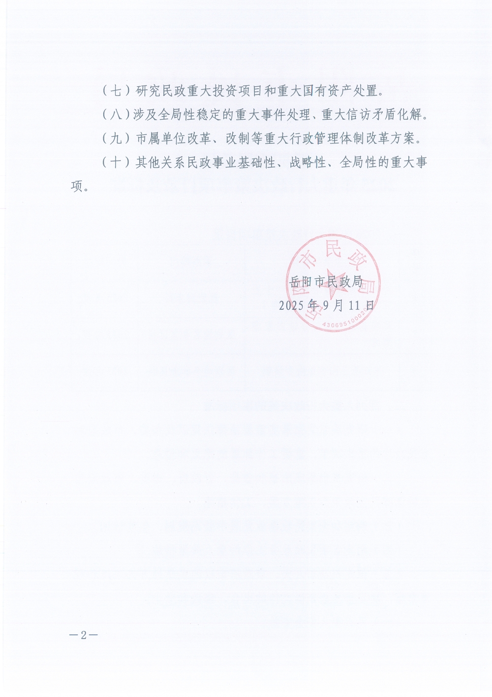 岳阳市民政局2025年重大行政决策事项目录及标准