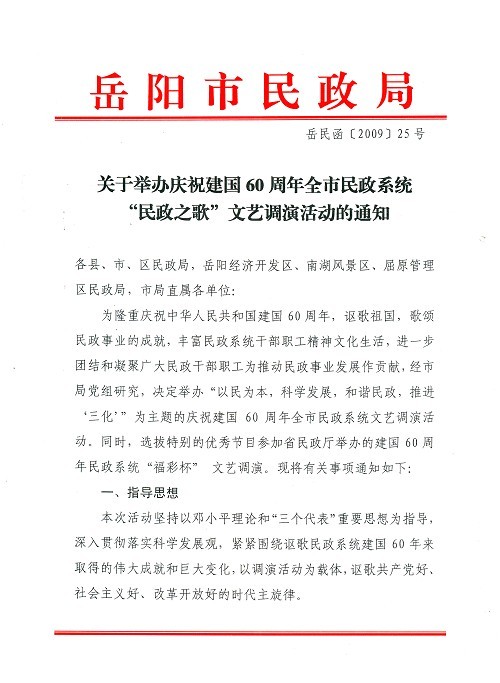 关于举办庆祝建国60周年全市民政系统“民政之歌”文艺调演活动的通知