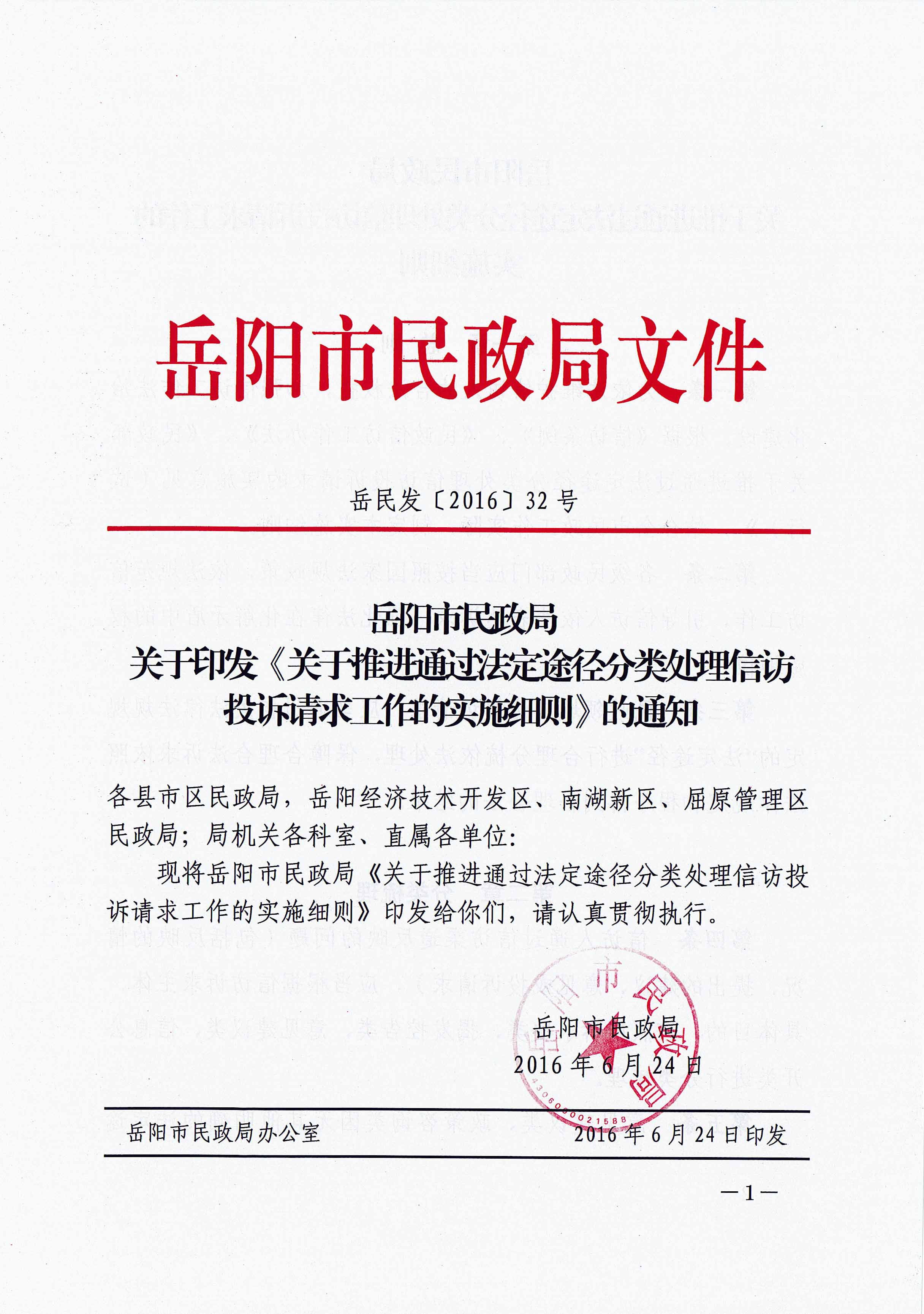 关于印发《关于推进通过法定途径分类处理信访投诉请求工作的实施细则》的通知