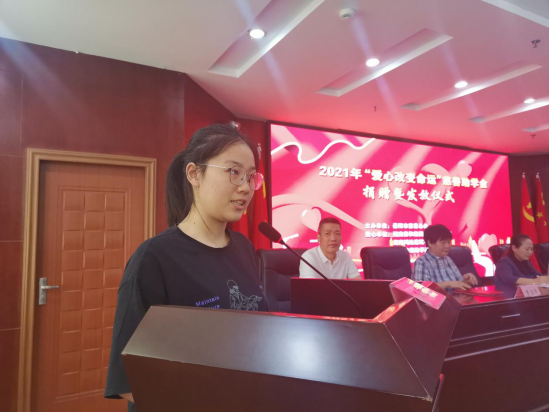 每一份助学金的背后都有一个感人的故事。助学仪式上,以肖雄为代表的三名学子做了典型发言,他们向大家讲述了各自的生活经历和求学历程,并表示,感谢党和政府,感谢爱心企业,感谢社会各界给予他们的关注和关心,今后一定不忘初心,砥砺前行。今天,因他人之善举而得以圆梦;那么未来,也定会向更多的人传递这份美好的善意!