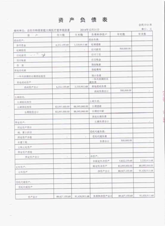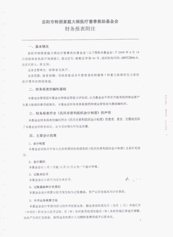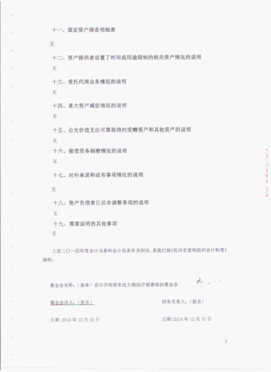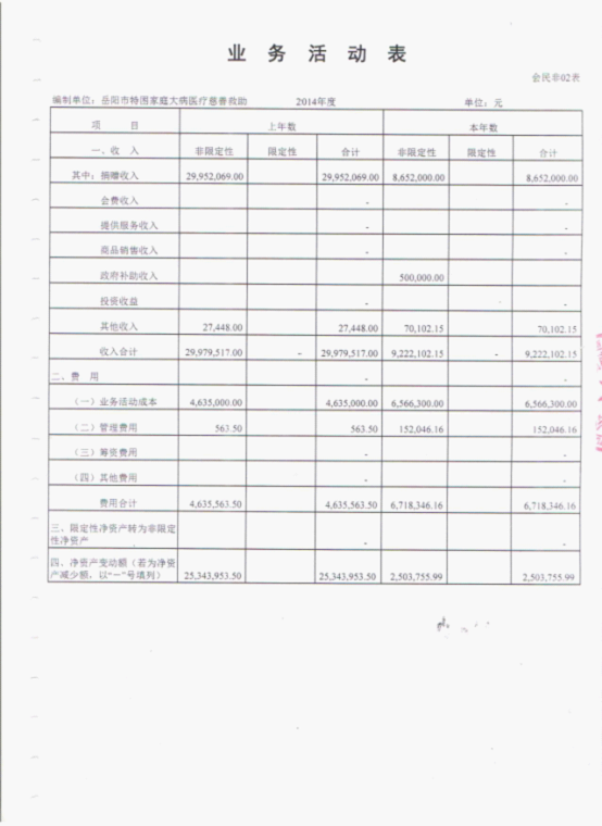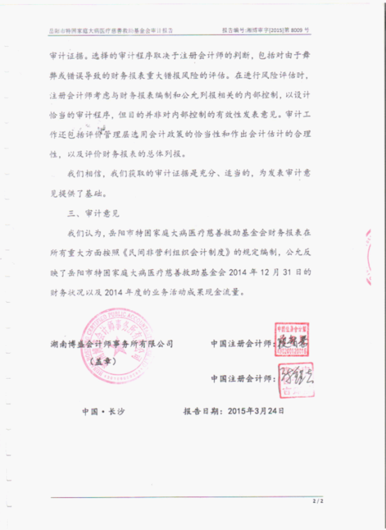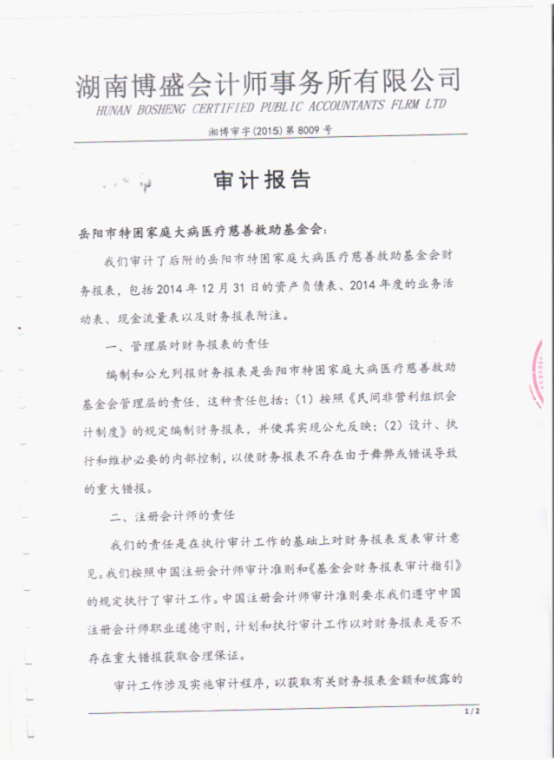 岳阳市特困家庭大病医疗慈善救助基金会2014年审计报告