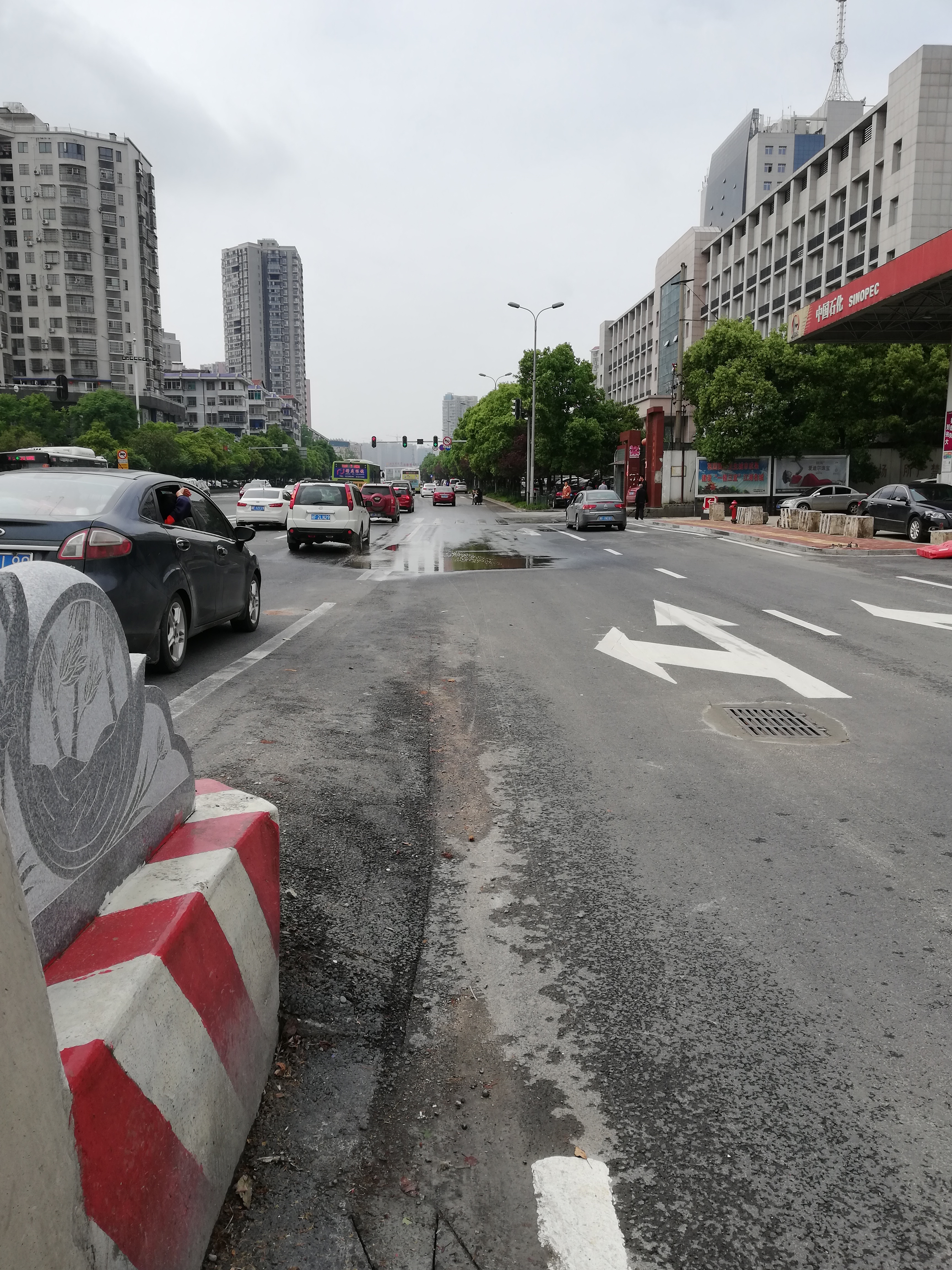 2、加油站靠南湖小区出入口处在湘北大道工程桩号以外,后期工程会接平;