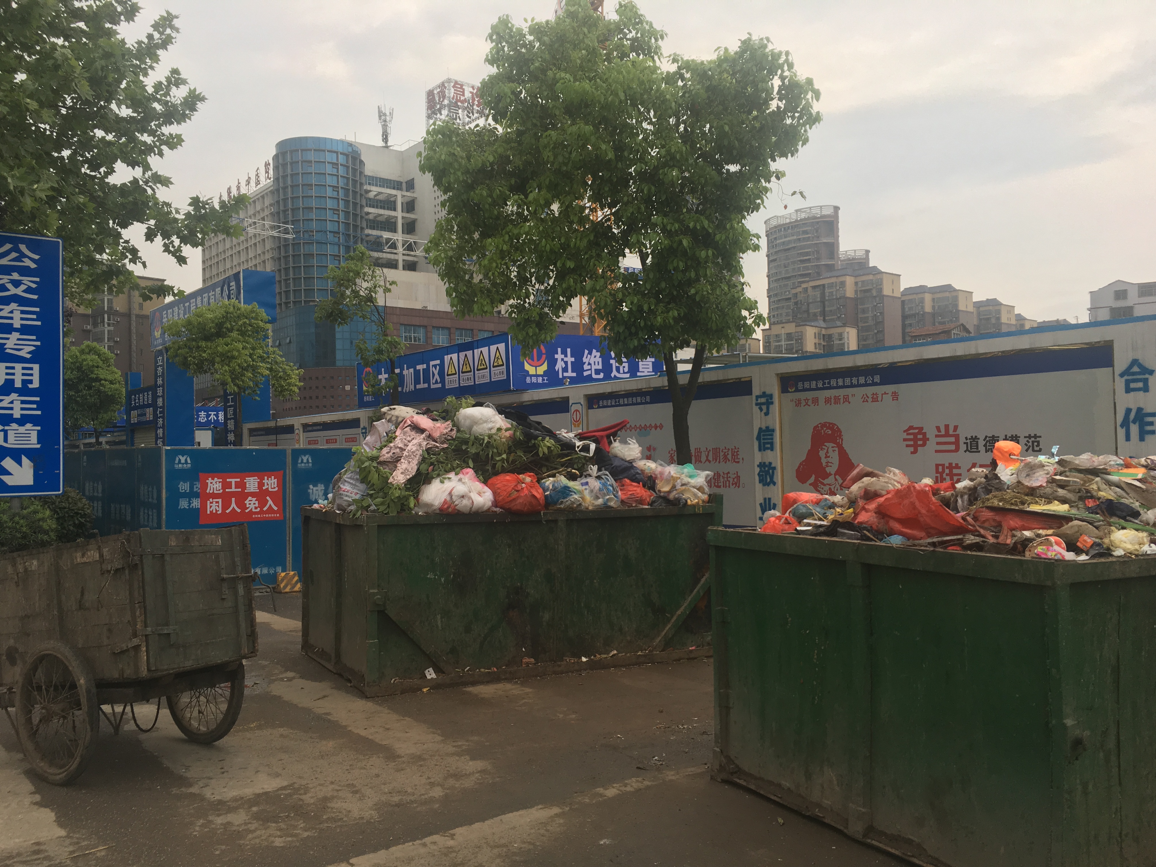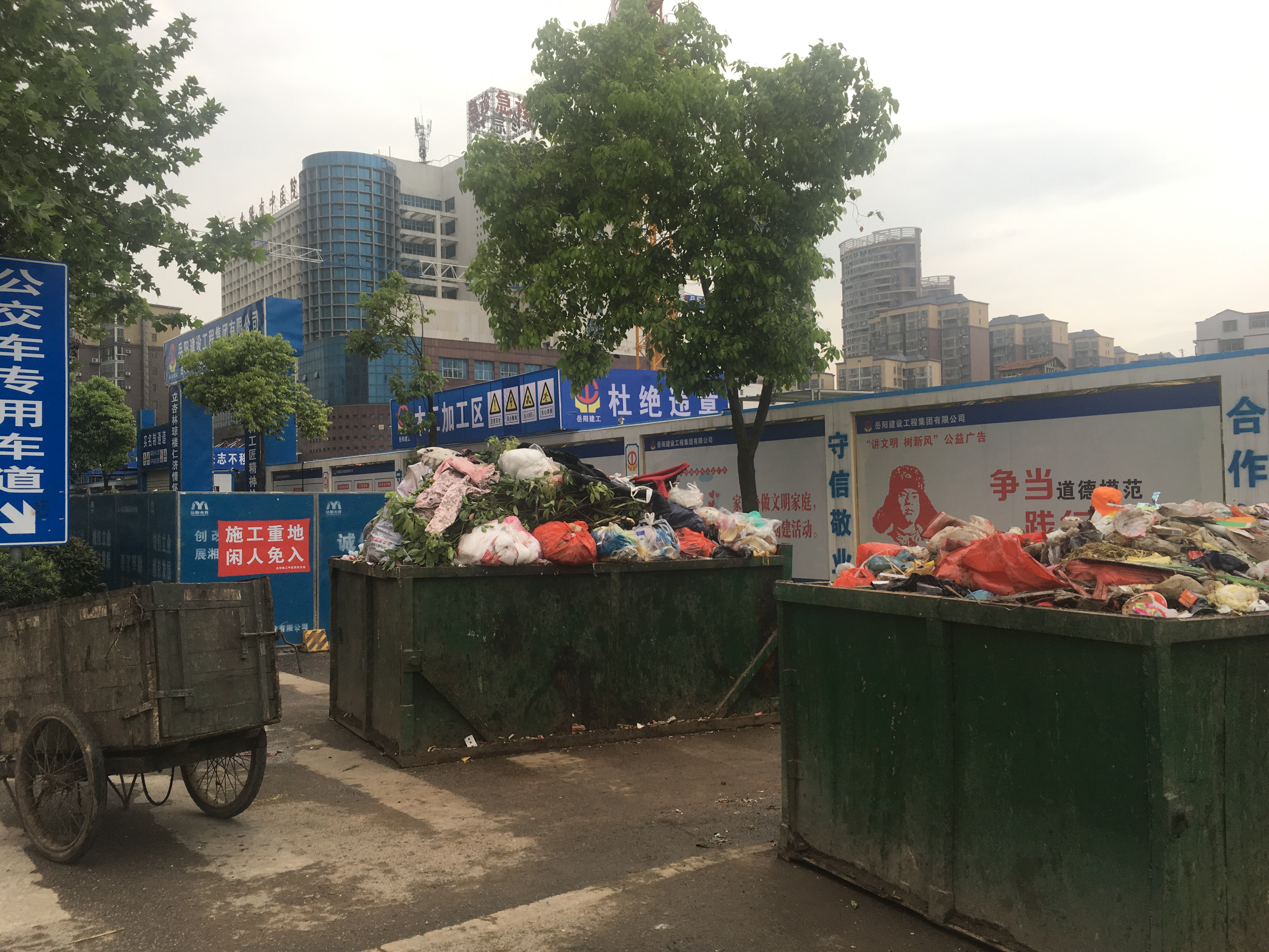 枫桥湖路和岳州路交叉口那里,路边放几个大垃圾箱,严重影响行人走路,还非常影响市容,请问这些垃圾箱就一直这样放着吗?都快半年了,相关部门有什么计划解决这个问题吗?