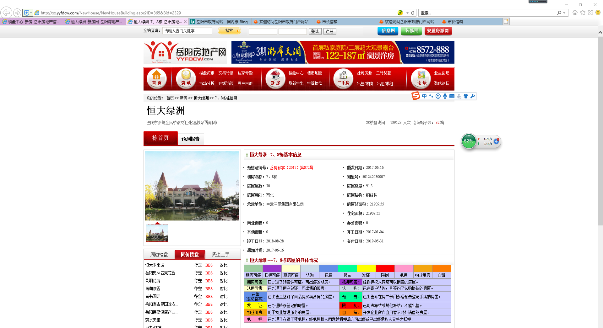 恒大绿洲其他各栋房子都有预售证图片、该栋的交易信息(含面积、公摊、备案价格、已售、未售、抵押、冻结等信息)。但唯独7、8栋只有页面、但页面里无预售证图片(有预售证号为岳房预字(2017)第072号),无该栋每套房子的以上交易信息。详见上传的附件,恒大绿洲售楼部告知原因是房产局系统原因导致不能显示,他们的电脑是和房产局的网签系统联网的,可以在售楼部网签交易。为交易安全起见、想咨询以下问题: