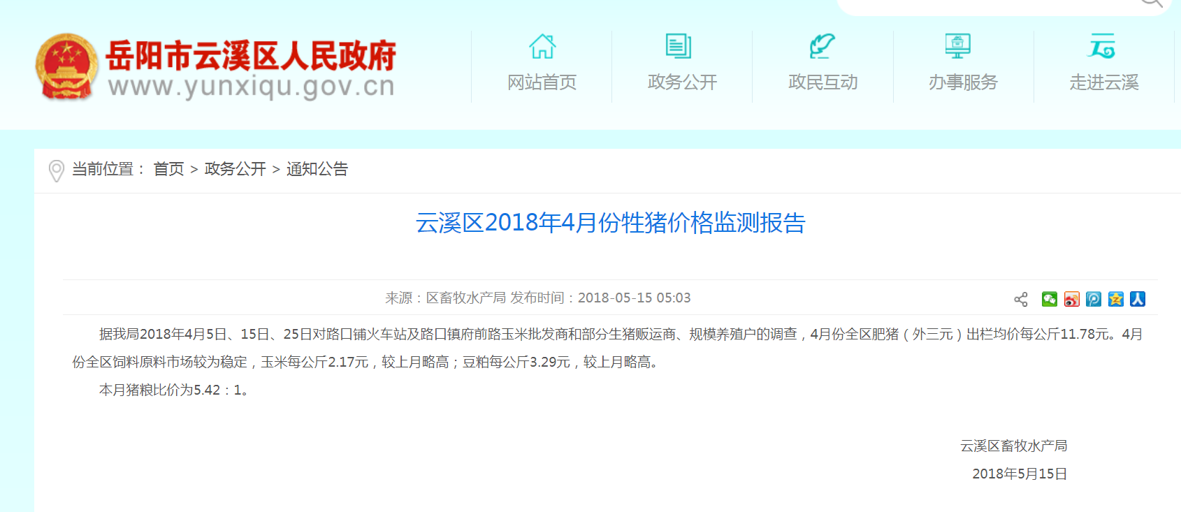 3、您问询云溪区政府网每月发布的价格监视情况,能否说明淡旺季的猪肉价格是陆城菜市场实际情况,我们咨询了区发改局、畜牧局,畜牧局的答复是,他们只提供生猪的毛坯价,猪肉的市场价他们不负责提供。