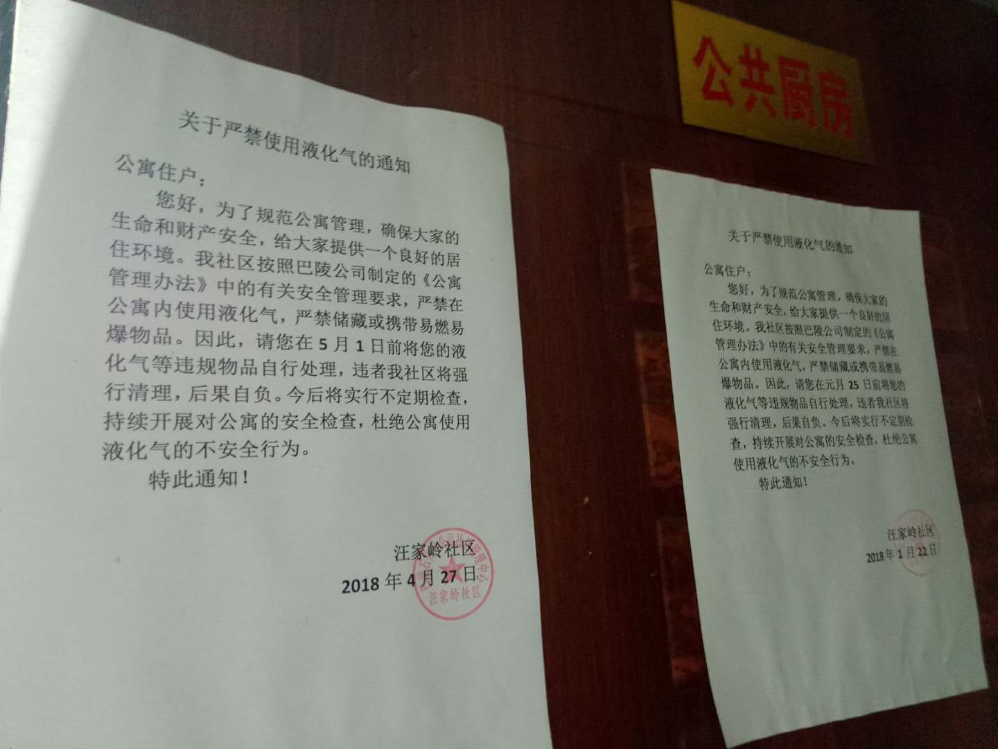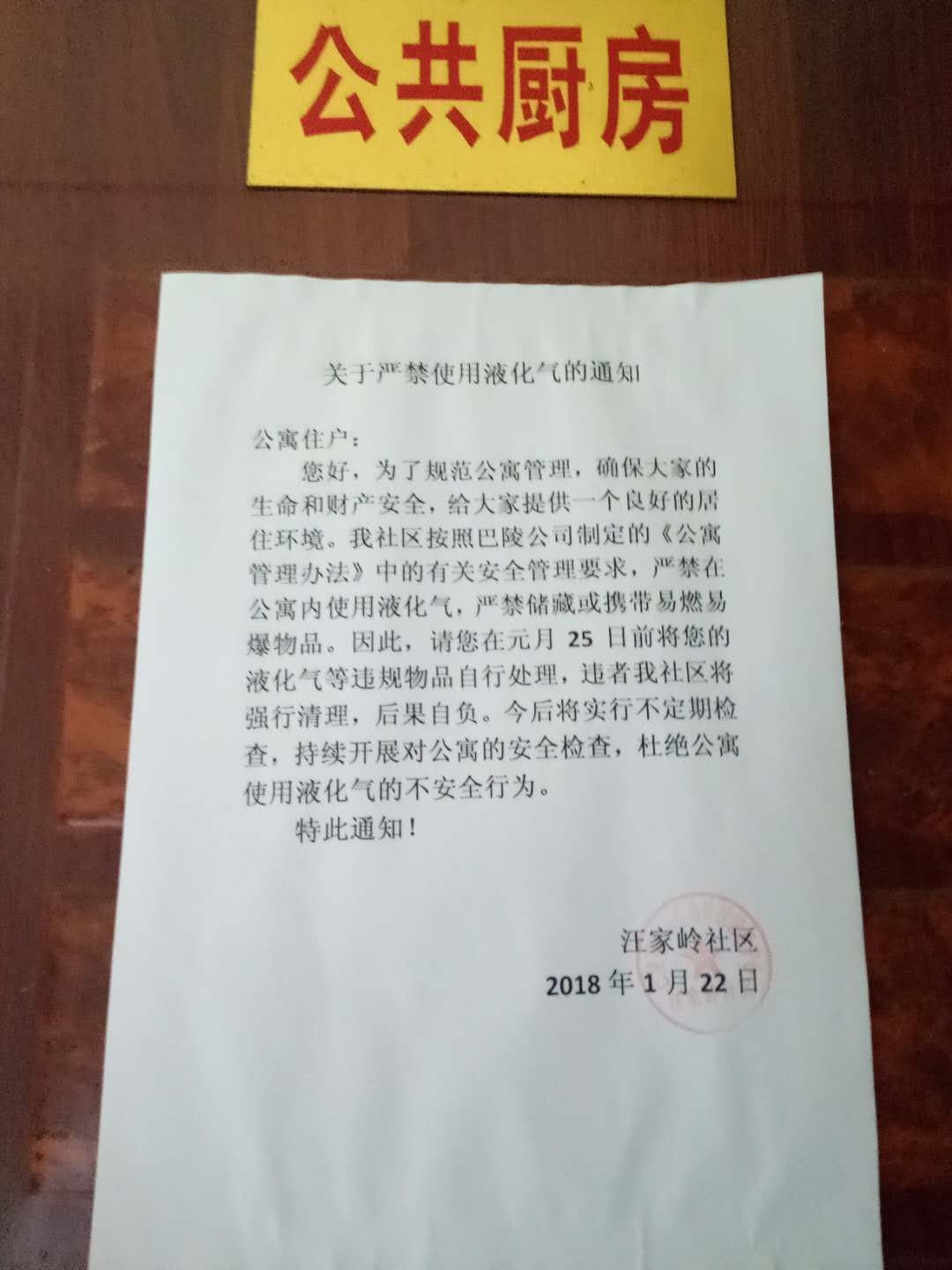 因安全隐患治理,岳化社区管理中心汪家岭社区取消全部气罐设施,并对公寓职工下发了通知。另外经调查发现和一公寓卫生状况并不差,垃圾桶问题是因为个别住户在丢垃圾的同时顺手就将垃圾桶带走了,所以楼道不再配备垃圾桶。汪家岭社区职工已联系并答复当事人。