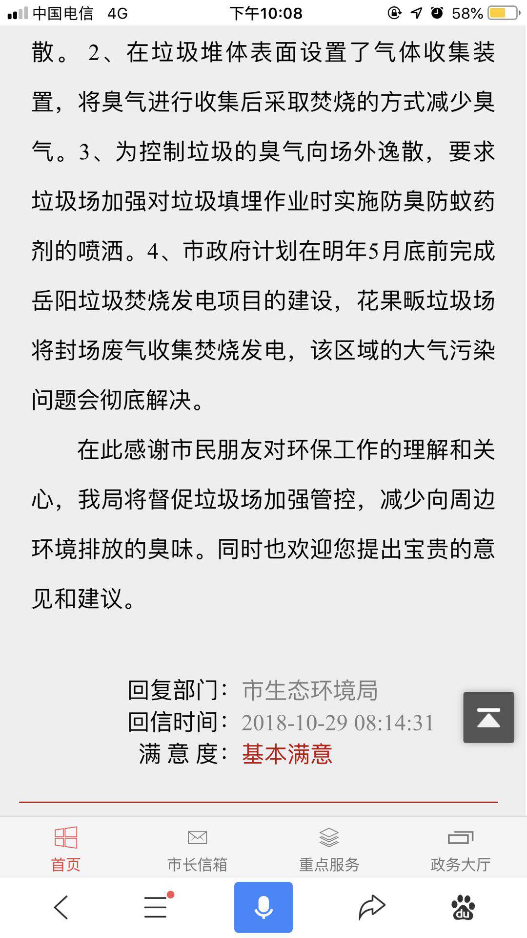 信件回复 满意度调查