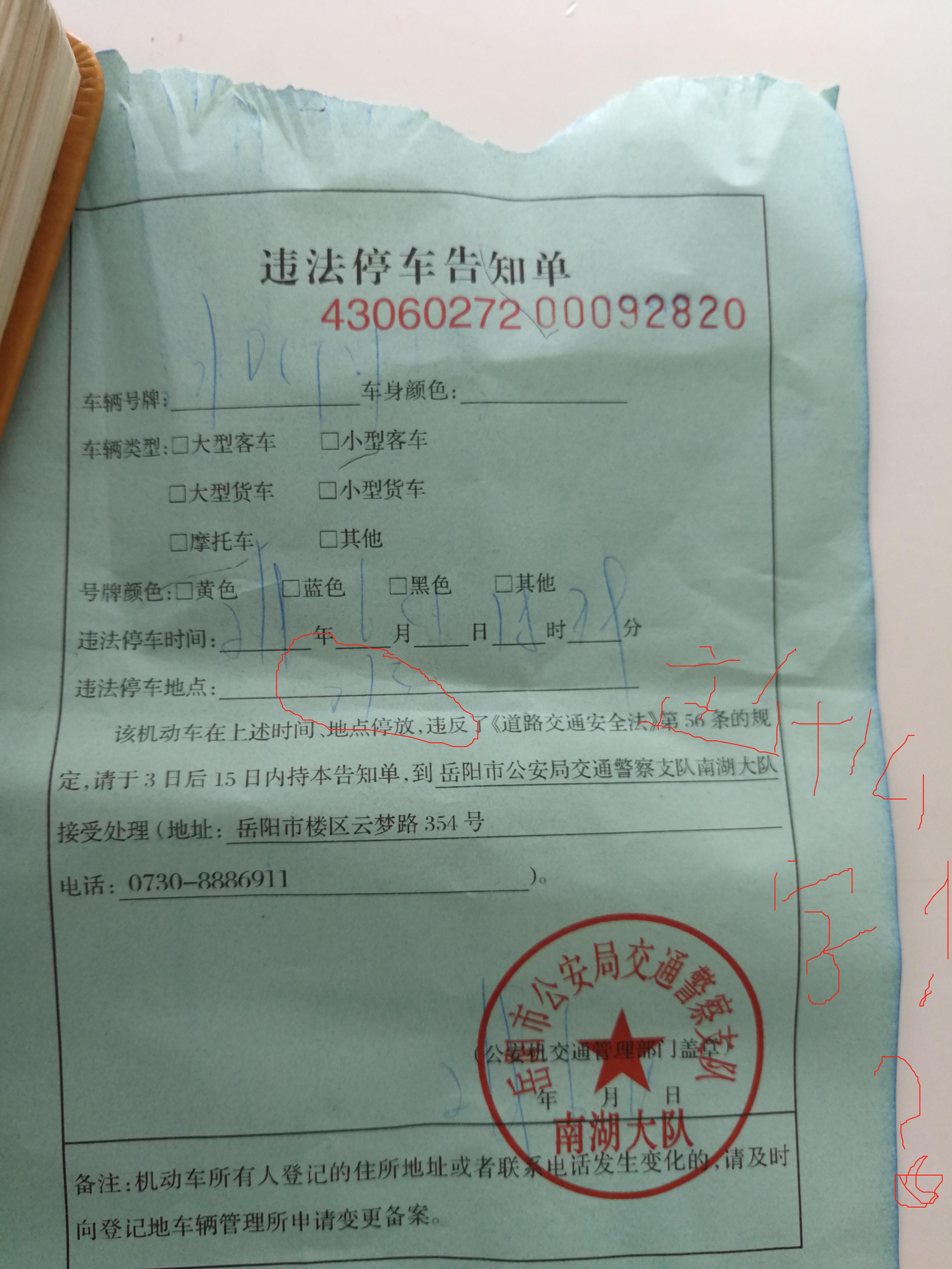 特此我提出质疑:1、没有标示标牌警告提示告知下,被贴罚单合理吗??2、否是存在欺负车主市民朋友贴罚单100元,别人不会提出质疑无所谓的心里?3、停车罚单上面,违法停车地点:写的什么字??怎么不是湖南理工学院南院门口的字样??