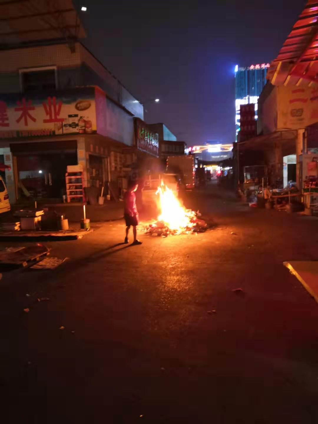 近期,白石岭中南市场内菜市场,每天晚上7点半关门时,就将市场内的垃圾堆放在路边进行焚烧。露天焚烧菜市场垃圾不但存在火灾安全隐患、影响市容坏境、散发有毒有害的恶臭气体更是影响周边居民身体健康。希望有关部门担起责任,有所作为,还周边居民一个宜居环境。
