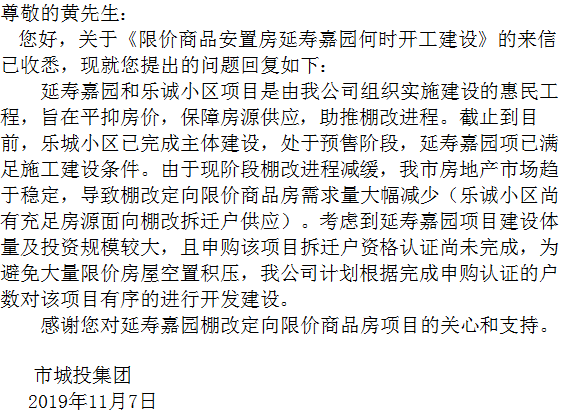 限价商品安置房延寿家园何时开工建设