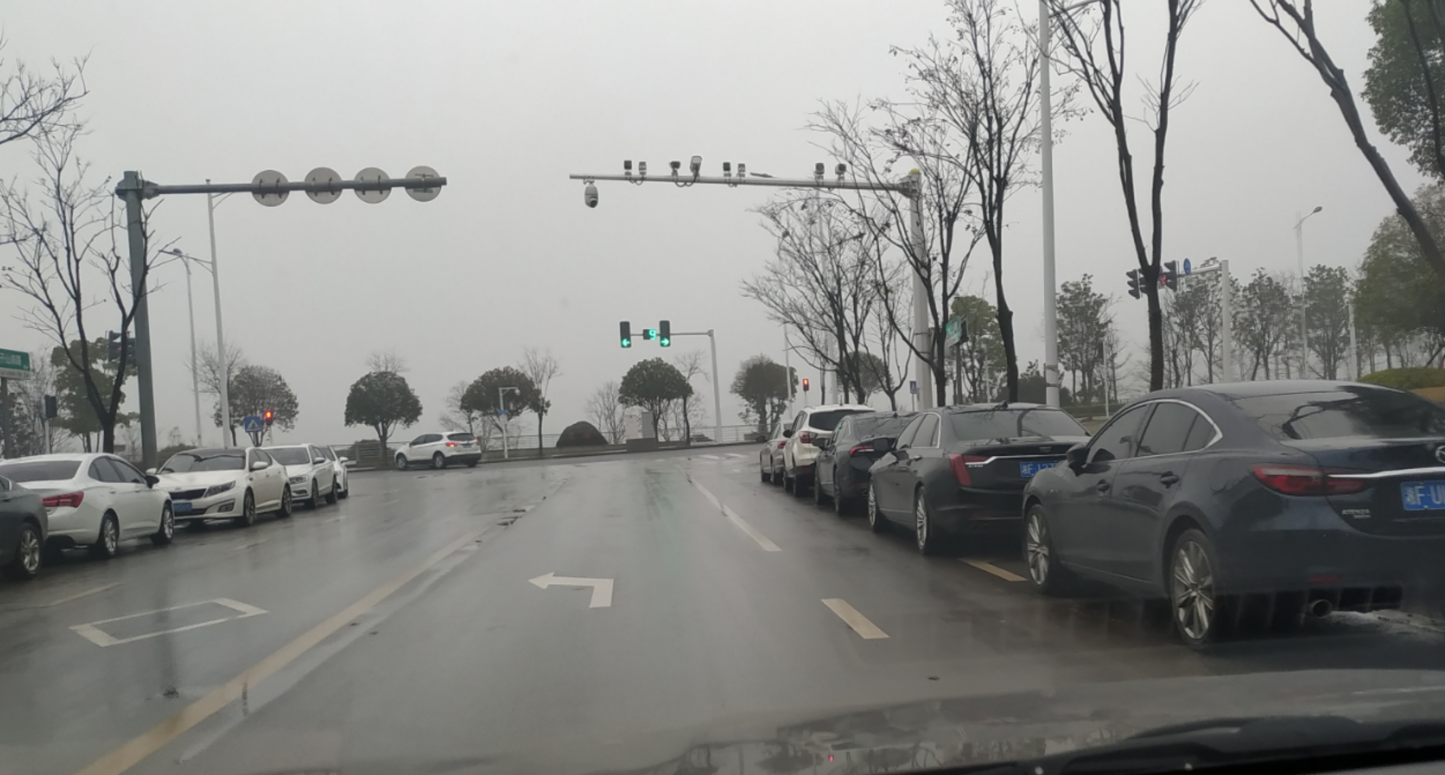 最近磨子山南路融创售楼部旁边三叉路口红绿灯开通了,昨天驾车由北往南经过该路口想要右转,结果发现有好几辆车违停并占用了右转车道(附图),如果想要右转,就得压实线或者借道右转,由于上班赶时间,绿灯仅剩几秒,只好借用左转车道右转。请问,这算“不按规定车道行驶”吗?是否会被抓拍扣分?如果会,希望相关部门管理下该红绿灯路口违规占用右转车道的车辆。文字回复即可,谢谢!