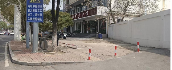 花板桥甲鱼小馆右侧长期车辆占用行人过道,行人过路需走马路上,很不安全,而且盲人也无法过路