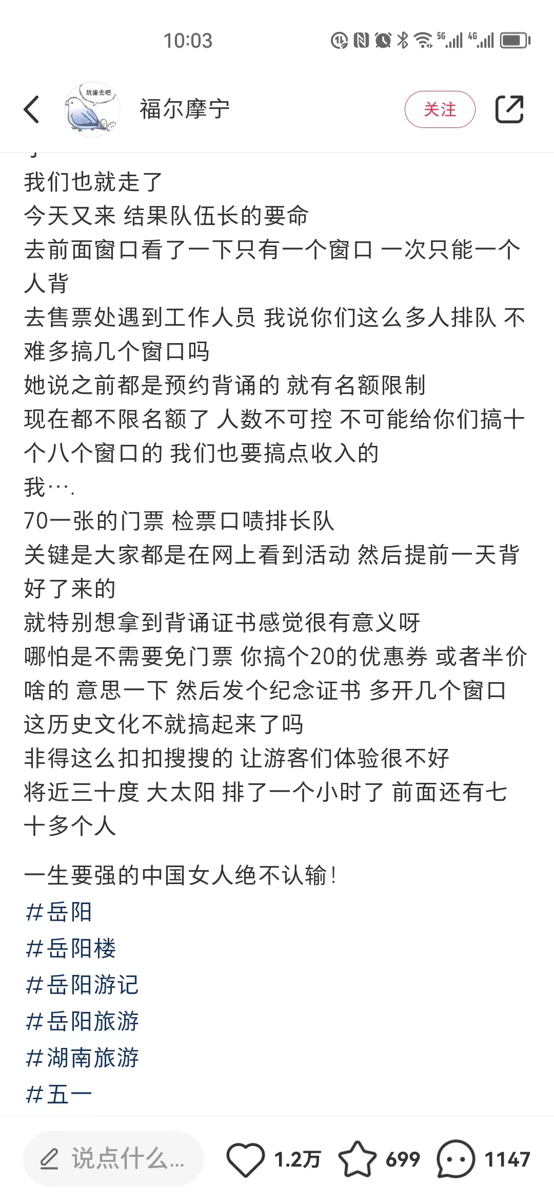 二、非常感谢对岳阳楼景区的重视与关心,我们将进一步强化服务意识、优化背记活动方案,以更加便捷、高效的模式,为广大游客提供优质的服务。同时,也希望广大游客一如既往地对我们进行监督,给我们提出宝贵意见和建议。