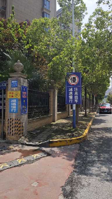 南湖新区南湖壹号住宅小区西门地下停车场交通导示牌安装于人行横道,但导示牌安装高度过低,行人通过有撞头风险,建议调整高度,去除安全隐患。